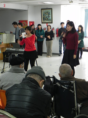 【保羅牧區/林偉盟報導】1/10(上週日),保羅牧區來到了榮民之家服事。新年新氣象,一開始主持人開頭便是一連串祝福爺爺們的話,緊接著便是第一個節目,是弟兄姐妹們的全體帶動唱《當我讚美》。輕盈的樂音中,讓爺爺們的心鼓舞,似乎也預告著保羅牧區新的一年,福音的火將再次被啟動。
